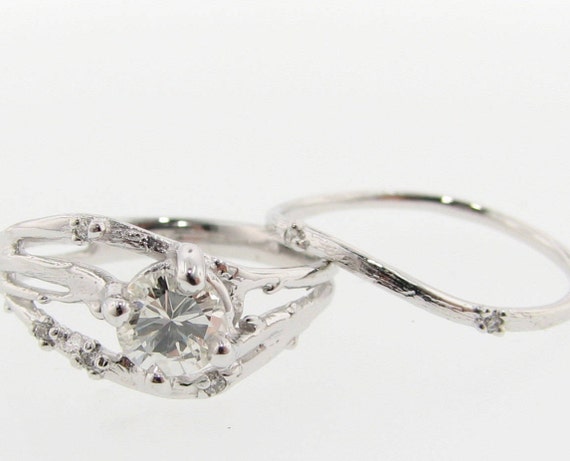 Cherry Blossom Branch Wedding Set Diamond White Gold Etsy