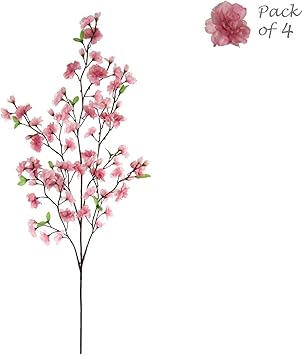 Aisamco 4 Pack Artificial Cherry Blossom Branches Flowers Silk